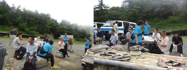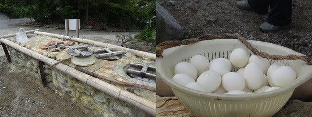まずは、温泉卵を作って食べようと蒸し釜へ