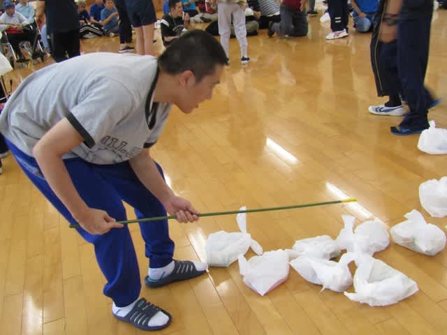 七夕飾りが完成した後に「お菓子釣り大会」で、盛り上がりました