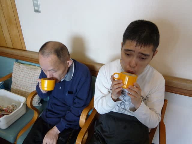 お風呂の後はお茶で水分補給 皆さんいい飲みっぷりです