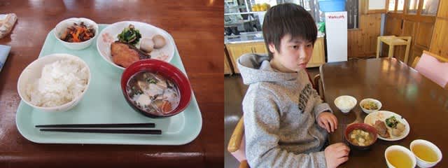 今日の夕食メニューはご飯、魚の煮つけ、もやしの酢のもの、のっぺい汁です。
