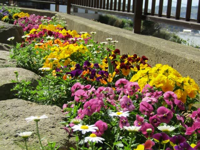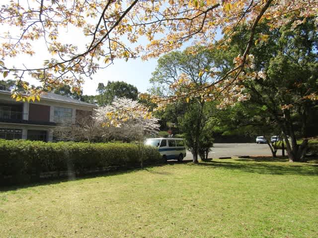 あけぼの学園では、園芸班で植えた花や、桜が満開です