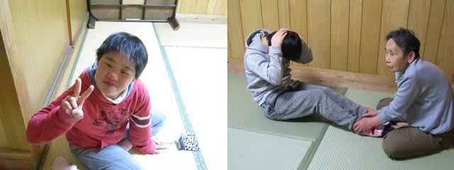 紙ちぎりをしたり、テレビを観たりリラックスモードです。