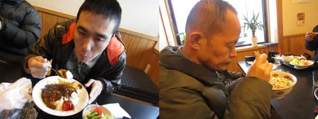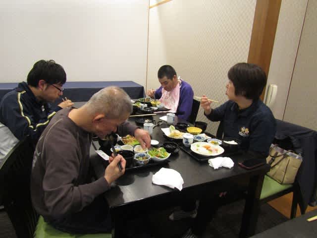 昼食会場へ着き、好きなメニューを選んでおいしくいただきました。