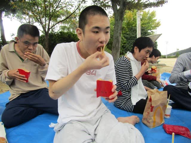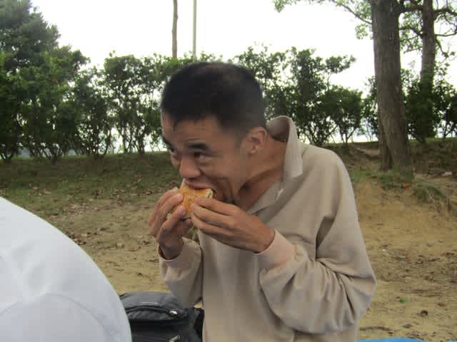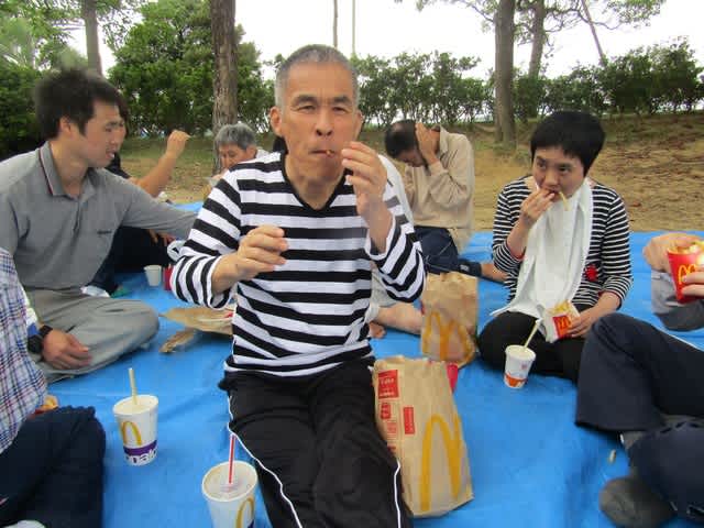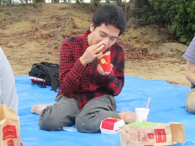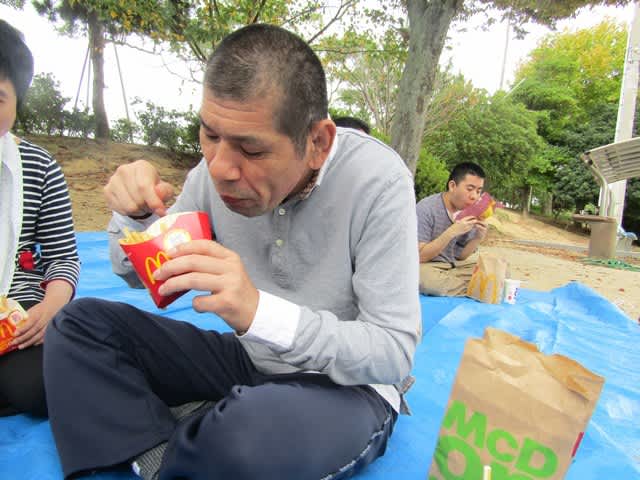 皆さんが大好きなハンバーガーなどを公園で頂きました