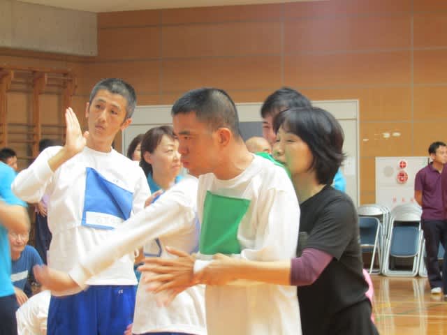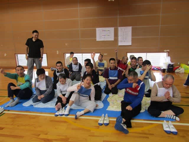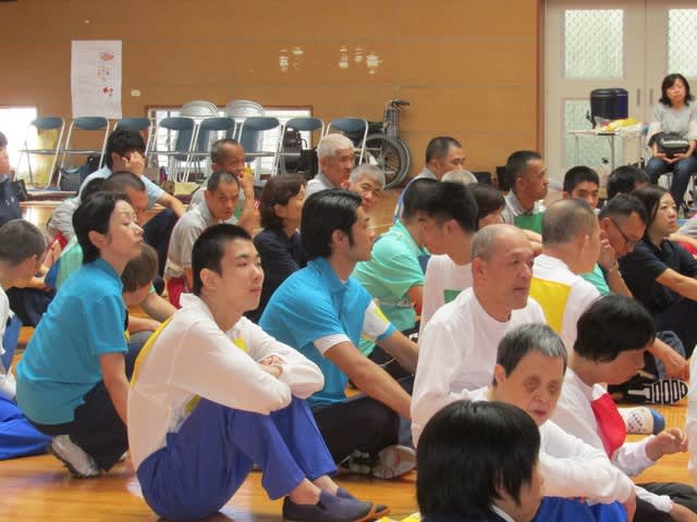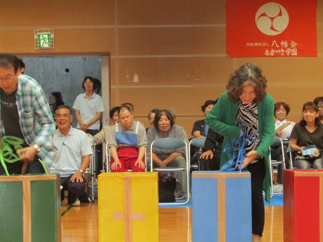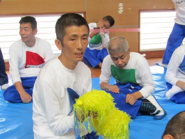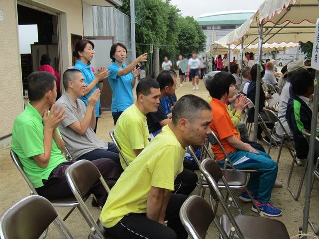 職員アトラクションの練習も行われ、その様子を見つめる利用者さん達