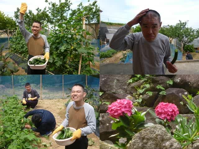 園芸班の方は、暑い中、屋外で除草作業や水やり、野菜の収穫などされています