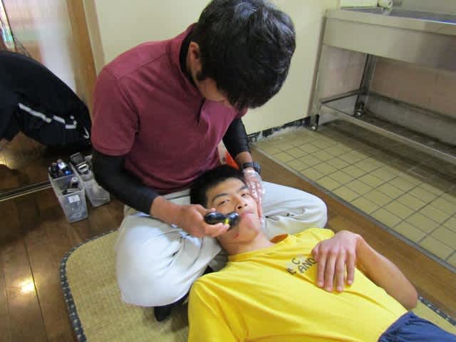 職員により、お一人づつ、口腔ケアや髭剃りを行います
