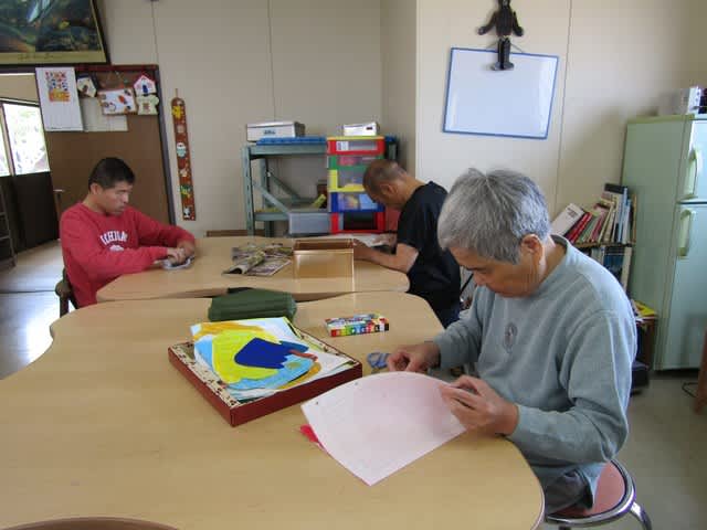 創作班の方は、絵を描いたり、紙を切って作品を作ったり夢中で取り組まれています