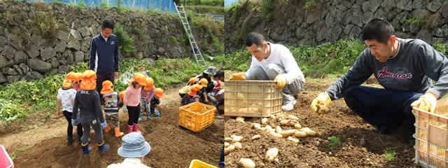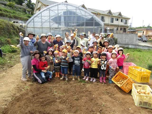 今日はジャガイモ掘りに保育園の園児さんが来てくれました。