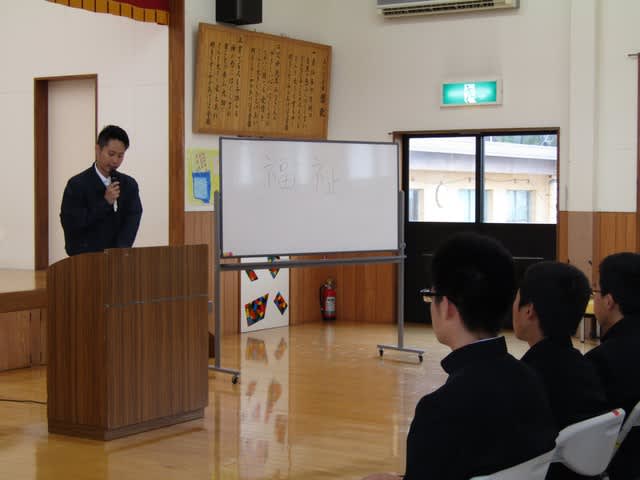 本日は副施設長より講話を行い、『福祉について』『障がいの捉え方』『学園の利用者様について、接し方』