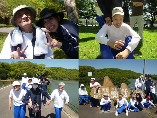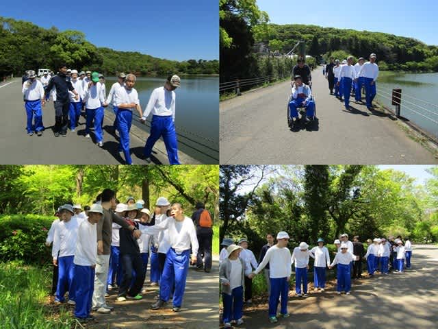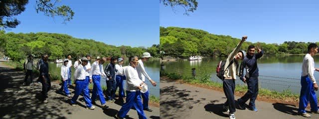 爽やかな天気の下気持ちよく池の周りをお散歩