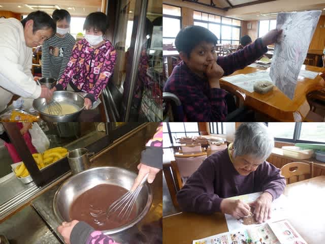 利用者の皆さんも混ぜたり、トッピングしたりとできる工程を一緒に行いました