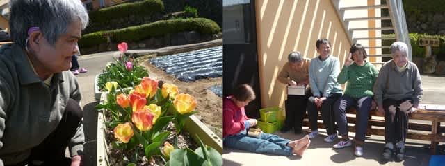 女子棟の皆さんは、外でゆったりと日向ぼっこをしました