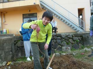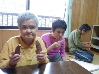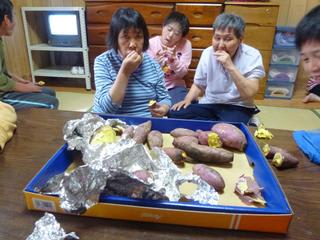 園芸班で収穫したサツマイモを午後から焼き芋に