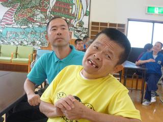 職員とのジャンケンに手こずりながらも、自然に笑顔も・・・
