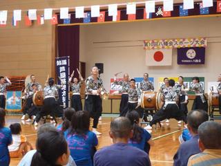 体育館に太鼓の音が響き渡り、迫力ある演奏でした