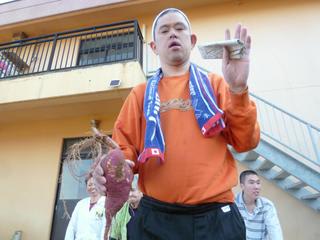 箱から紐を全部引き出し、最後に職員とジャンケンで勝負
