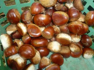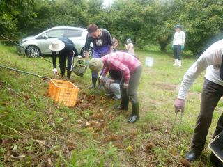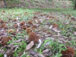 どんな料理になるのか楽しみに、熱心に栗を拾っています