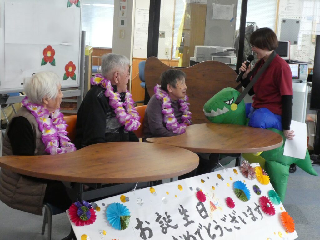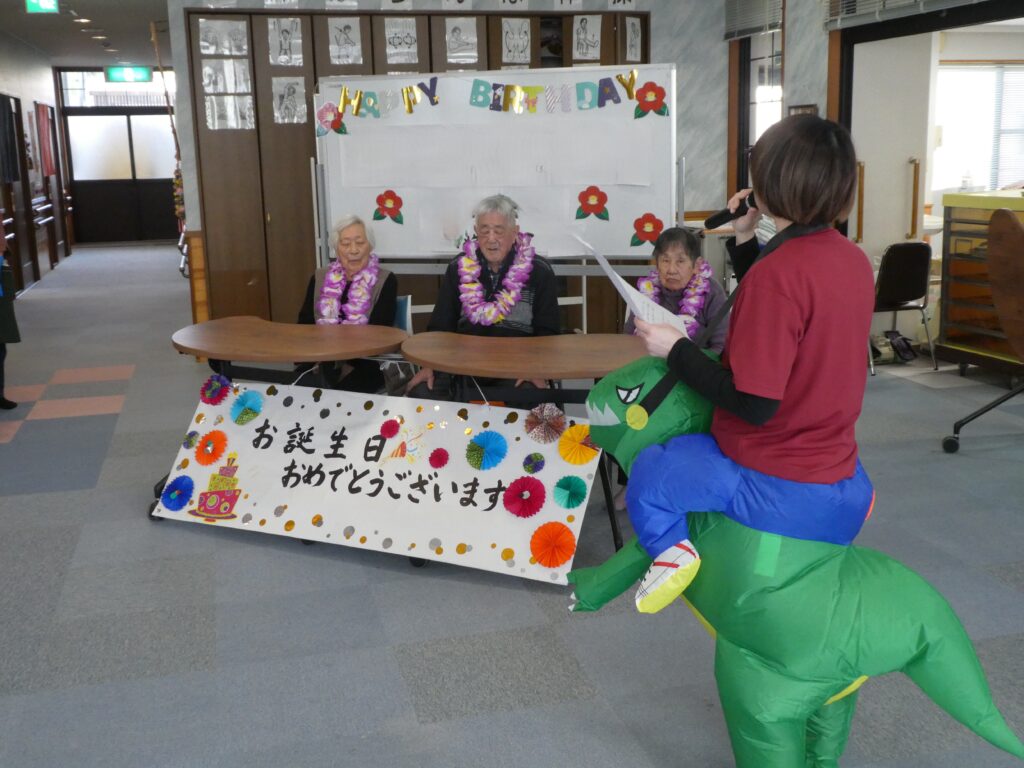 恐竜に乗りながら司会をして、誕生会を盛り上げていただきました♪