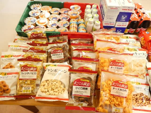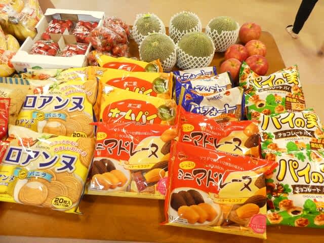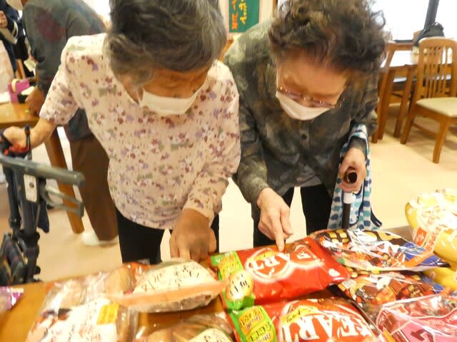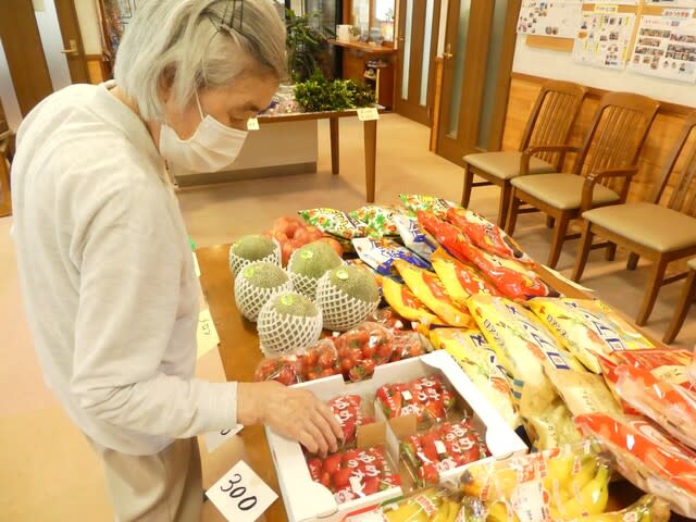 たくさんのお菓子や果物等の商品が置かれており、利用者さんが手に取り真剣に選ばれていました