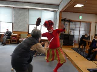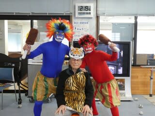豆の代わりに手作りの紙玉を投げ見事鬼を退治