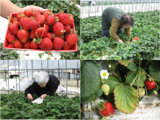 赤々と色づいた美味しそうな苺が、次から次へと実っています。 普段は体の不調を訴える方も、この時はどんな痛みもなんのそののようです。