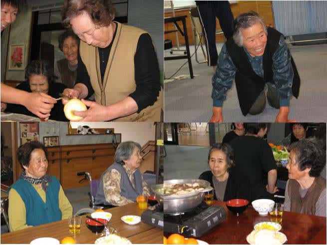 レクリェションの「林檎皮むき」や「物真似」はいつもと同様笑いと拍手の連発でした。