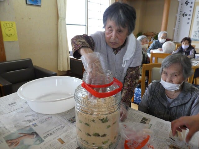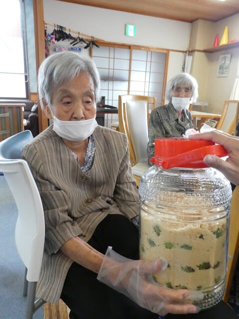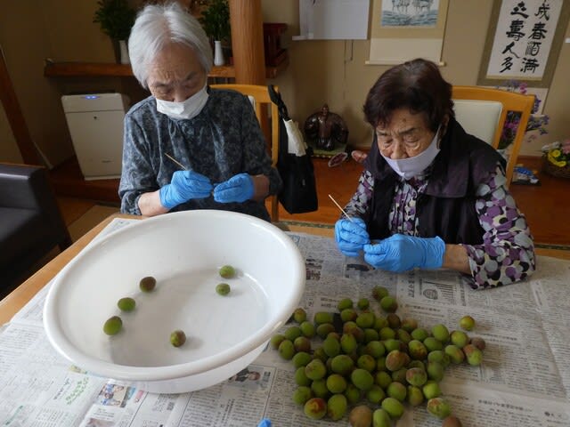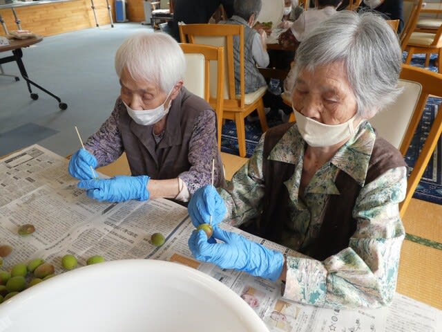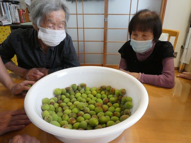今日は利用者宅から頂いた、梅を使用して『手作り梅シロップ』を作りました