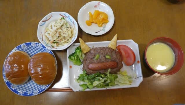 昼食では可愛い鬼さんのハンバーグが提供され、箸をつけるのが勿体ないと、とても喜ばれていました