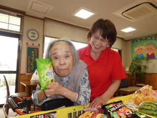 とても楽しそうに商品を選ばれ、お菓子に果物、お花と