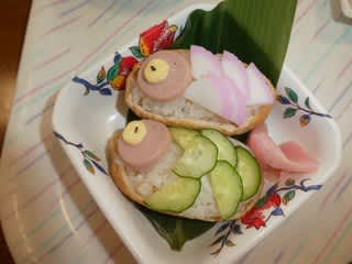 昼食は、稲荷寿司を鯉のぼりに飾り付けした「鯉のぼり稲荷」でしたよ