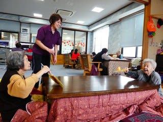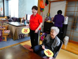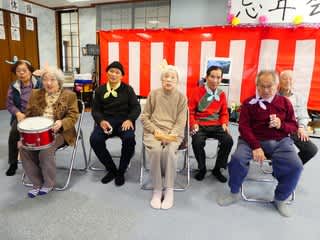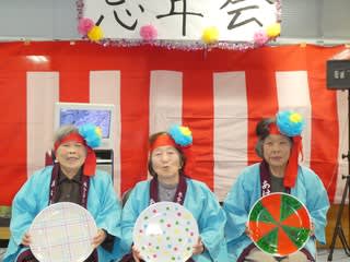 利用者さんも余興に参加されました女性の方は職員がお化粧をして、いつも以上に若々しく美しく変身されていました余興は・・・