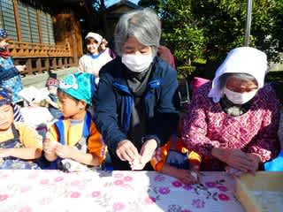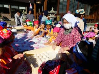 餅ちぎりは、長年されてきたベテランですので、素早く綺麗にちぎられていましたよ保育園との子供達とも交流ができ喜ばれていました。