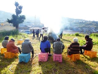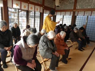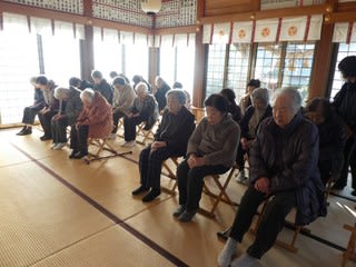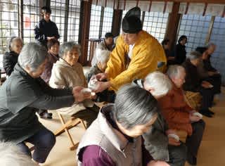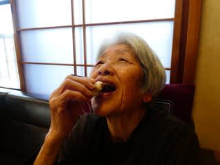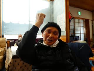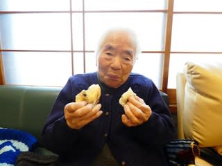 デイサービスに戻って、鬼火焚きで焼けたお餅を皆さんでいただきました