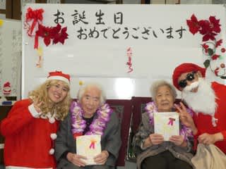 24日はクリスマスイブということで、サンタと、サンタの娘がお祝いに来てくれ、とても賑やかな誕生会になりました