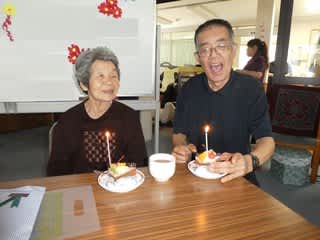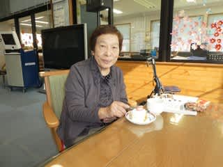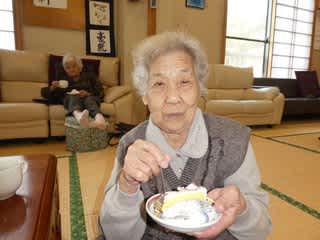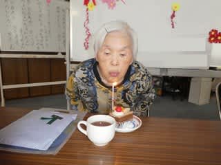 職員と、利用者さんで歌でお祝いをし、誕生者の方には、ろうそくを消してもらいました。お二人とも、とても喜ばれていました