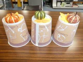 紙コップにボールを入れて、机を滑らせ沢山点数を取った方の優勝です
