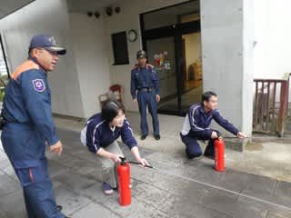 職員は、消防署の方より、消火器の使い方を教えて頂きました