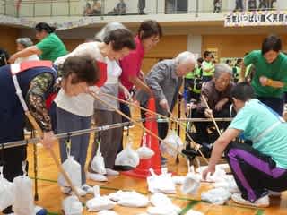 来月の「八幡会スポーツ大会」に向けて皆さん、鳴子で踊りの練習中です