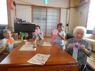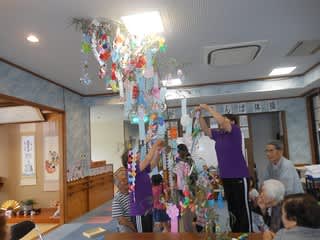 今日は、保育園児の皆さんと七夕飾り作りをしましたよ