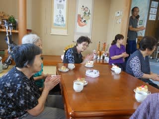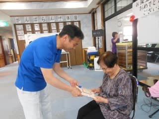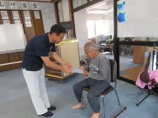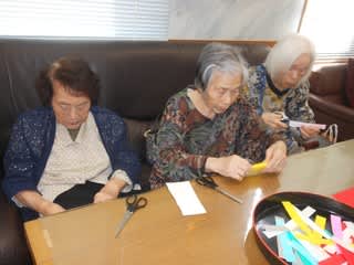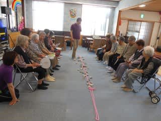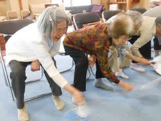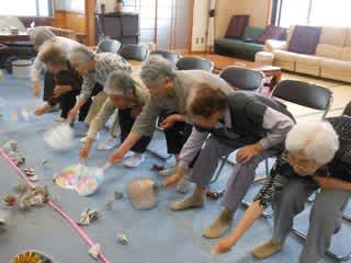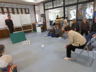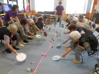 今週のレクレーションは、うちわで中央に置かれた落ち