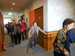 火災のベルが鳴り、職員の誘導で
