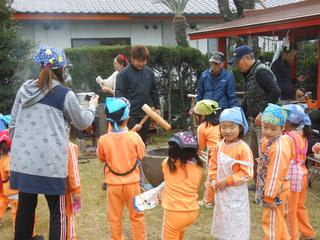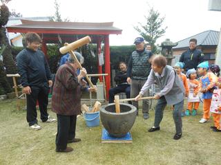 今日は保育園と合同で餅つきを行いました
