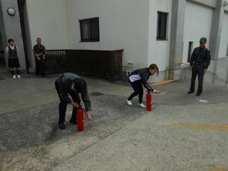 その後は消防署の方に消火器の使い方を
