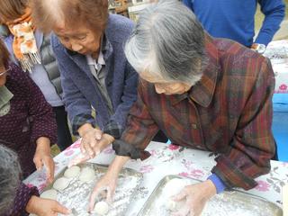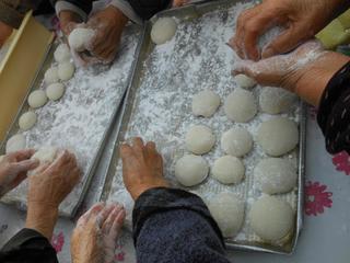 その後は、もちを丸めました
