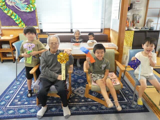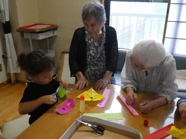 保育園児さんも来てくれて、一緒に協力して七夕飾りを作製します