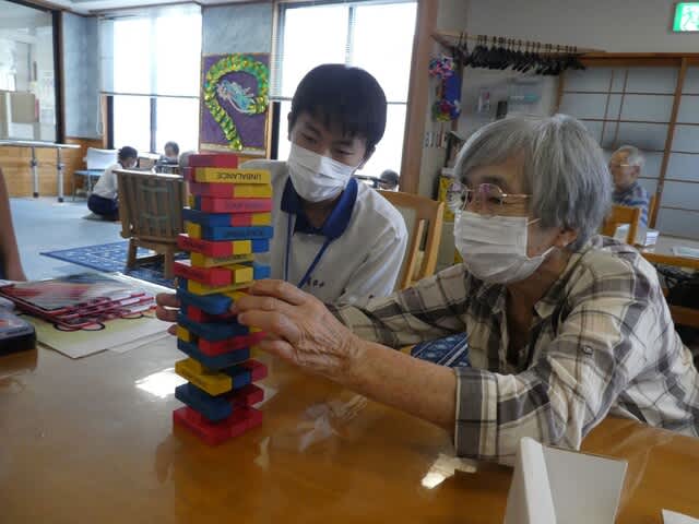 一緒に会話を楽しみ、レクリエーションも協力して取り組みました