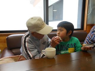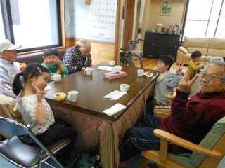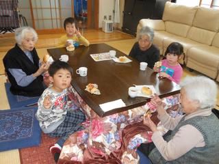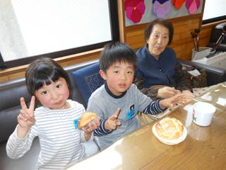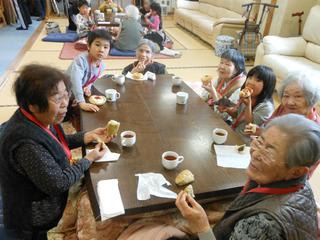 パン選びが終わり、園児さん、利用者さん、一緒におやつの時間です。