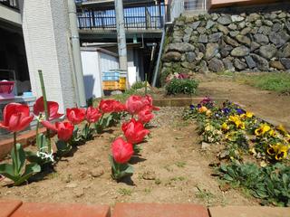 デイサービスも花壇の花が咲いてきました春のおとずれを感じられています