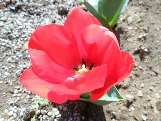初めは背の低いチューリップでしたが、花が咲いた後に茎が伸びてきましたよ